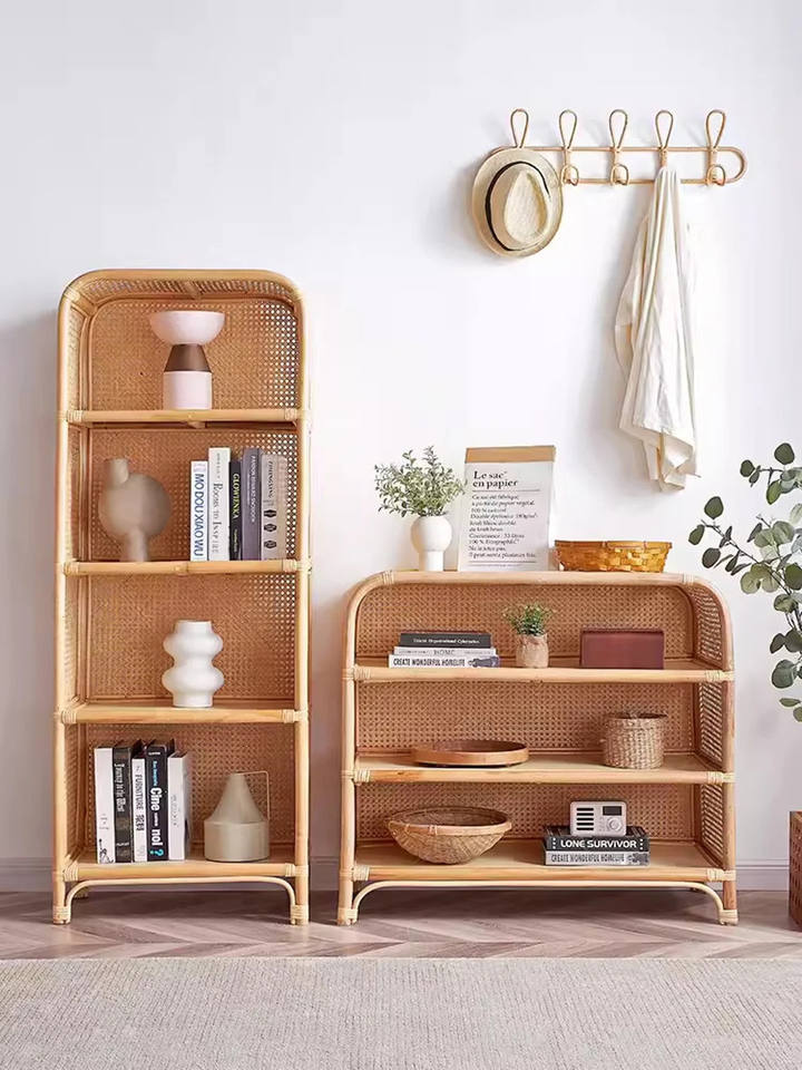 Bibliothèque en rotin faite à la main mobilier d'intérieur en rotin pour la décoration du salon fabriqué au Vietnam