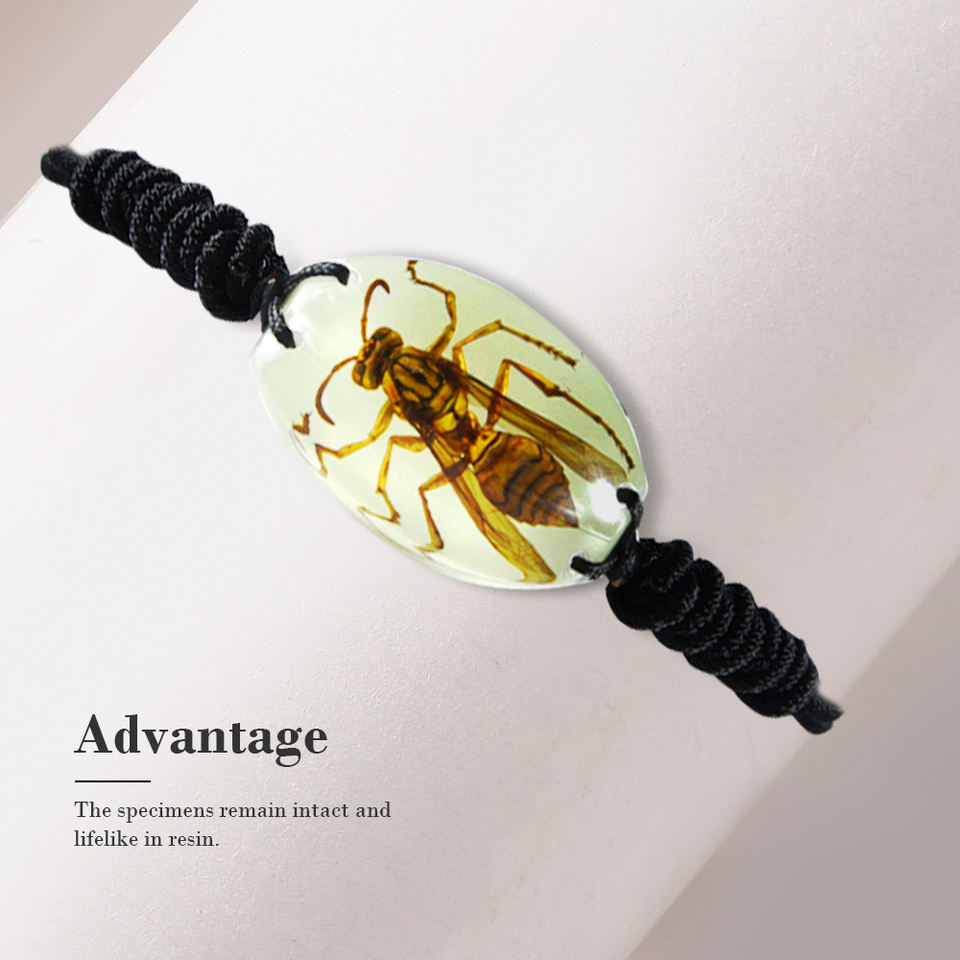 Fait à la main véritable insecte bijoux lumineux ambre fossile Bracelet avec pendentif frelon Bug résine Bracelet pour hommes