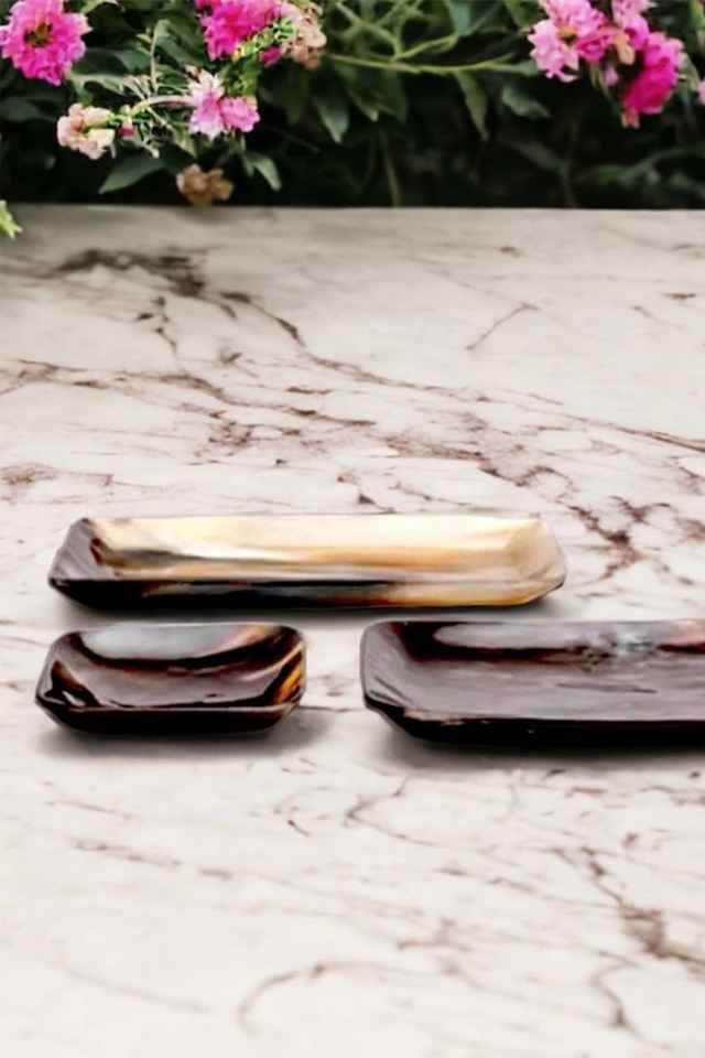 Plateau de service en corne fait main, style animal, pour la maison, 3 tailles différentes, idéal pour servir des desserts ou comme objet d'art