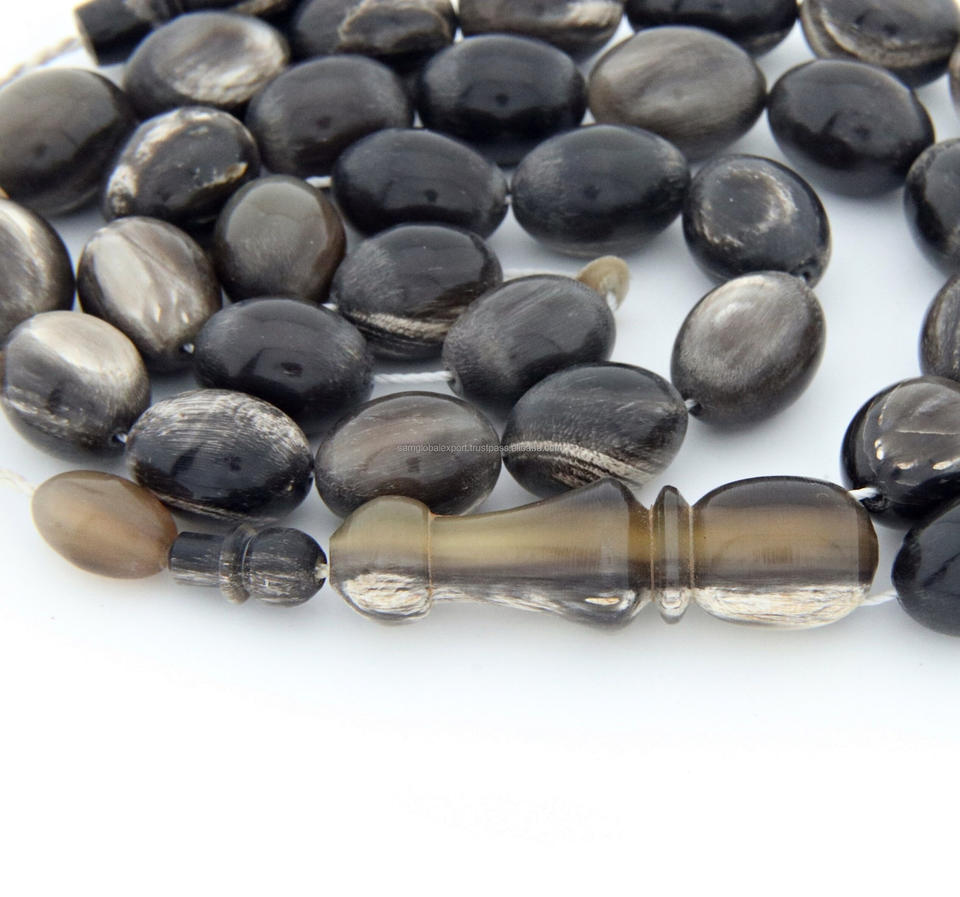 Chapelet islamique en corne naturelle fait à la main, perles de prière en corne de buffle 33/100, misbaha, tasbeeh turc traditionnel, tasbih