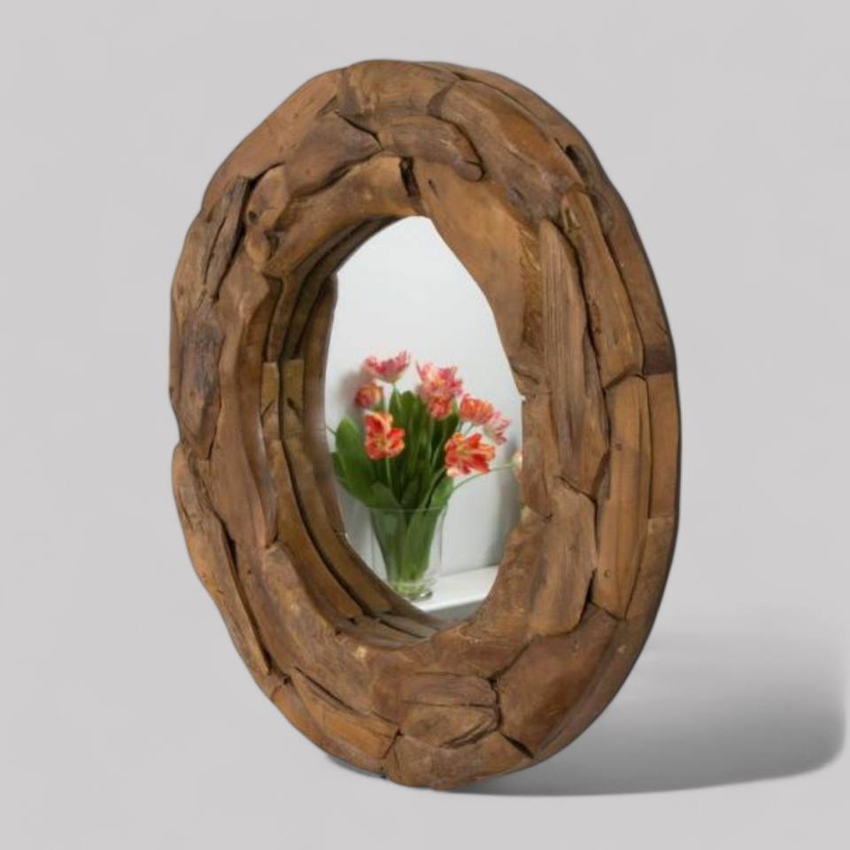 Miroir mural décoratif à la main en racine de teck