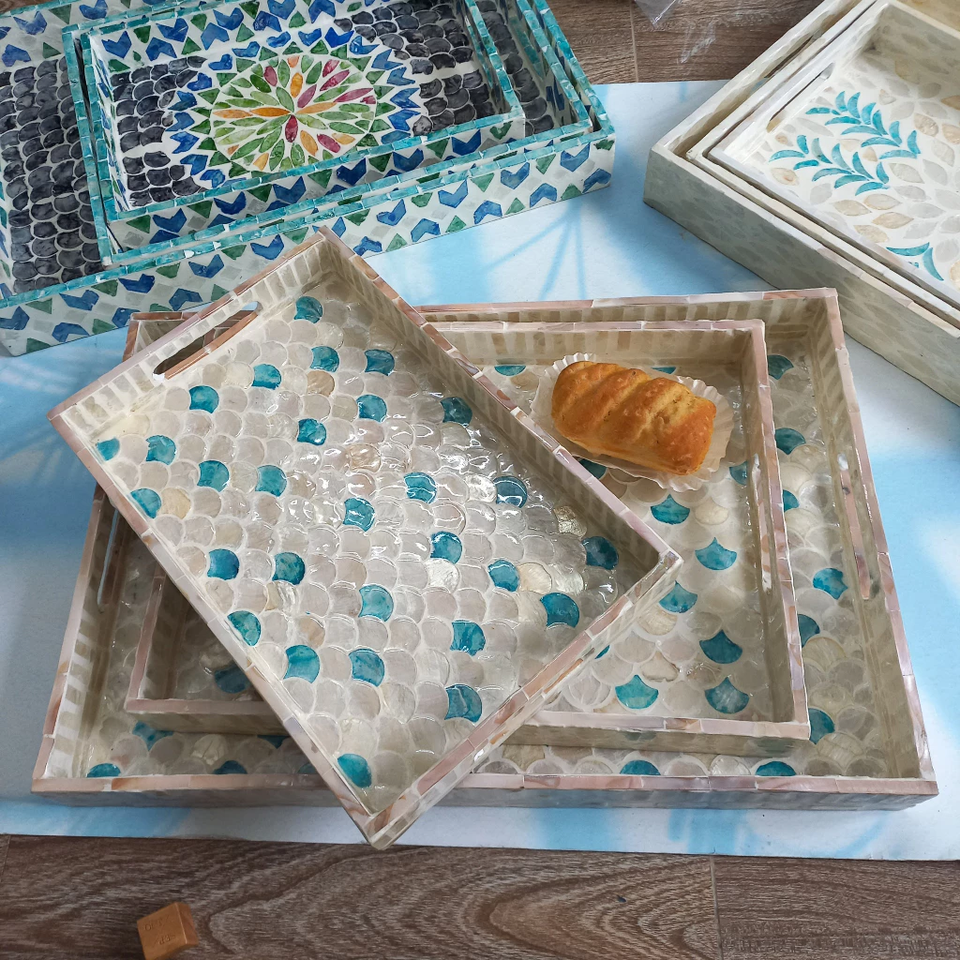 Plateau de service rectangulaire de luxe, fait main, écologique, en matériaux naturels du Vietnam, compatible lave-vaisselle, pour la restauration, les restaurants et les hôtels