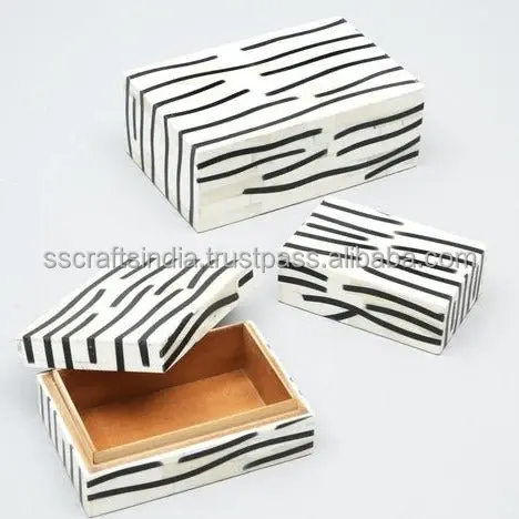 Organisateur de rangement en bois MDF rectangulaire fait à la main noir blanc incrustation d'os boîte à bijoux résine décor à la maison cadeaux d'entreprise voyage