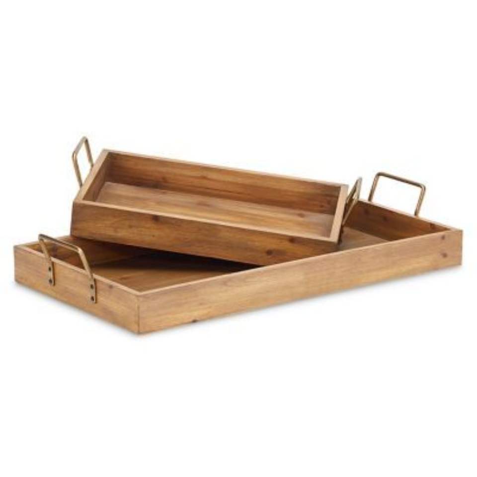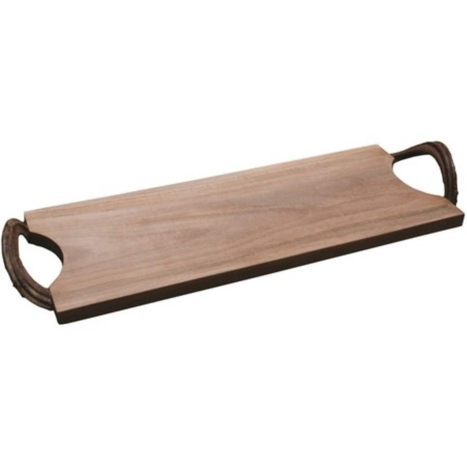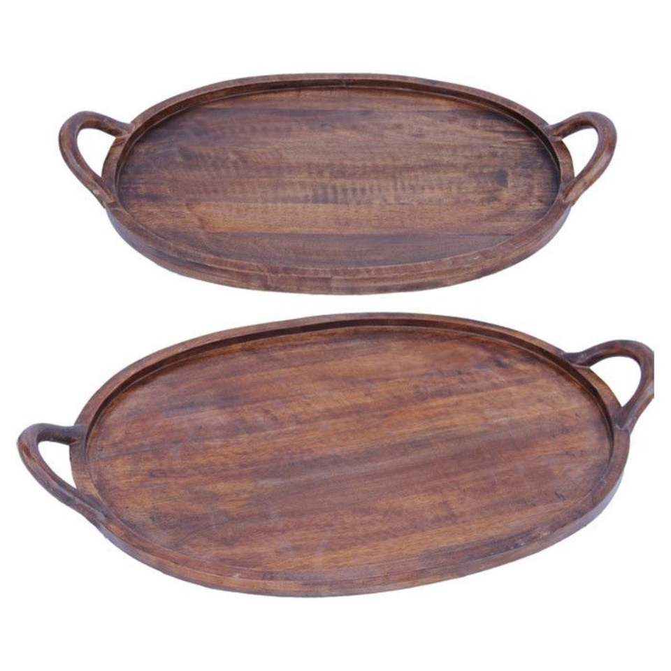 Plateau de service rectangulaire en bois de manguier fait main avec poignées découpées, plateau décoratif rustique pour table basse et cuisine