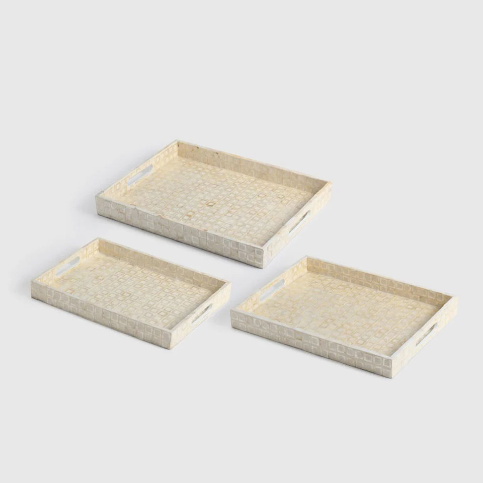 Plateau de service rectangulaire fait main en nacre incrustée, lot de 3, plateau décoratif en bois, décoration de maison écologique, cadeau