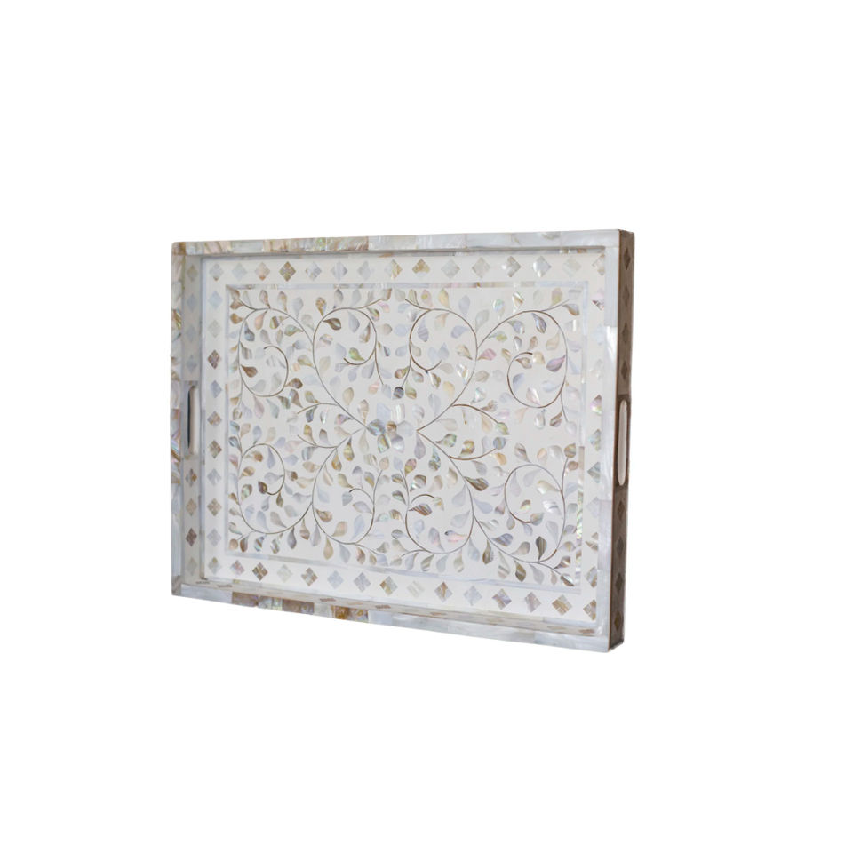 Plateau de service rectangulaire fait main en nacre incrustée, lot de 3, plateau décoratif en bois, décoration de maison écologique, cadeau