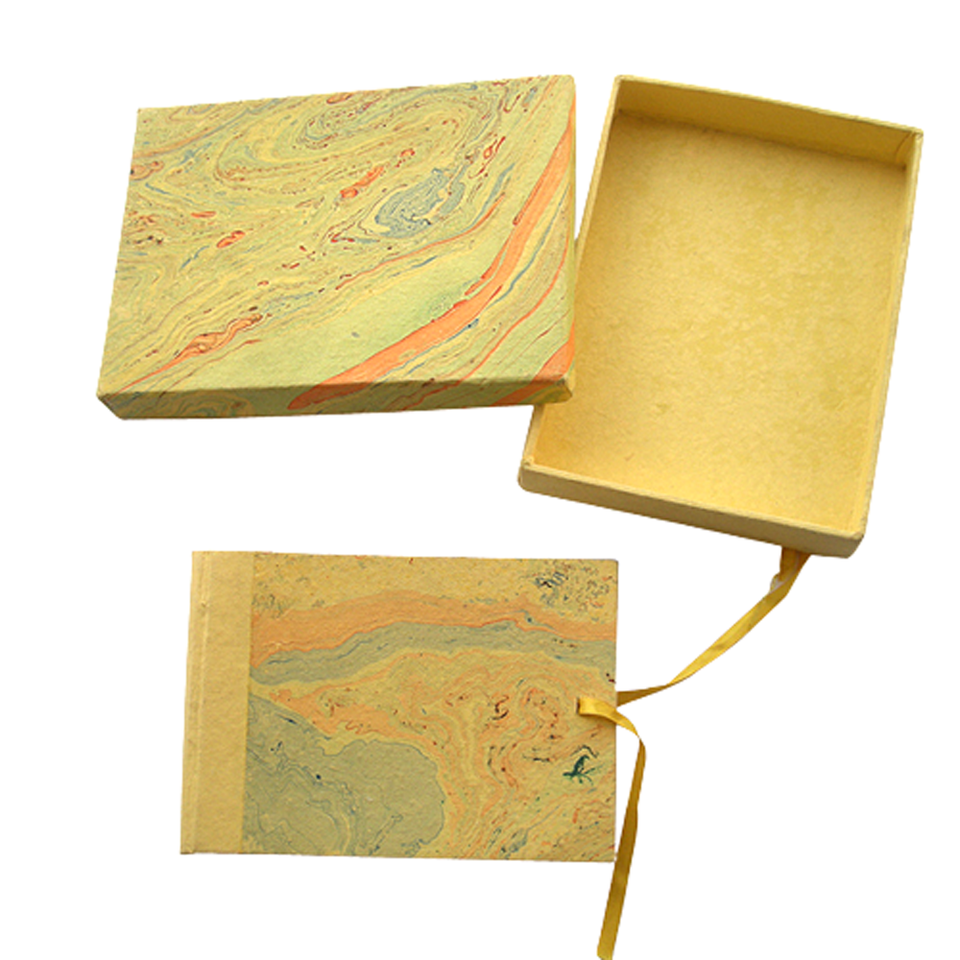 Album photo en papier couleur marbre jaune recyclé fait à la main personnalisé avec boîte de couleur assortie
