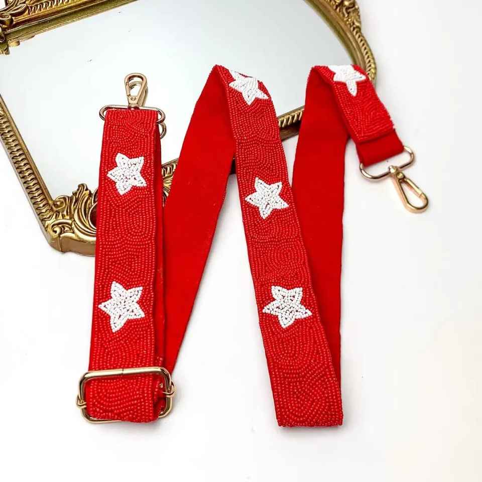 Sangle de sac brodée à la main avec des perles rouges, étoile noire, large bandoulière, poignée de sac à bandoulière, remplacement, fournisseur indien