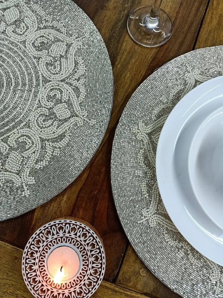 Sets de table faits main de luxe brodés de perles rouges et vertes, écologiques et personnalisables pour la décoration de la maison et des mariages