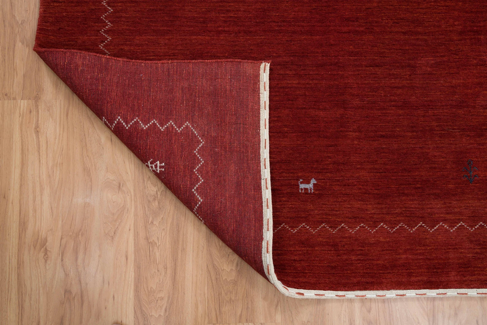 Tapis Gabbeh en laine rouge fait main, motif tribal, design minimaliste, tapis de sol pour la maison, décoration confortable, 3002