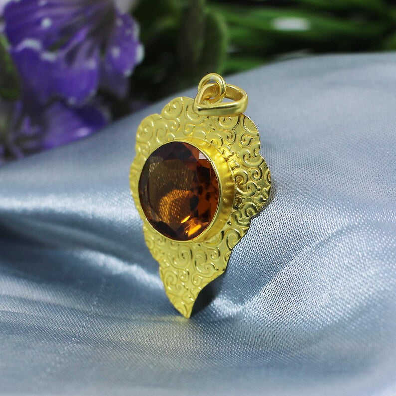 Pendentif fin à motif de pyramide de style religieux fait à la main avec citrine or rhodié et plaqué or rose perle bijoux breloque