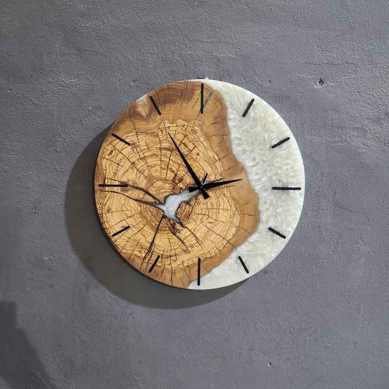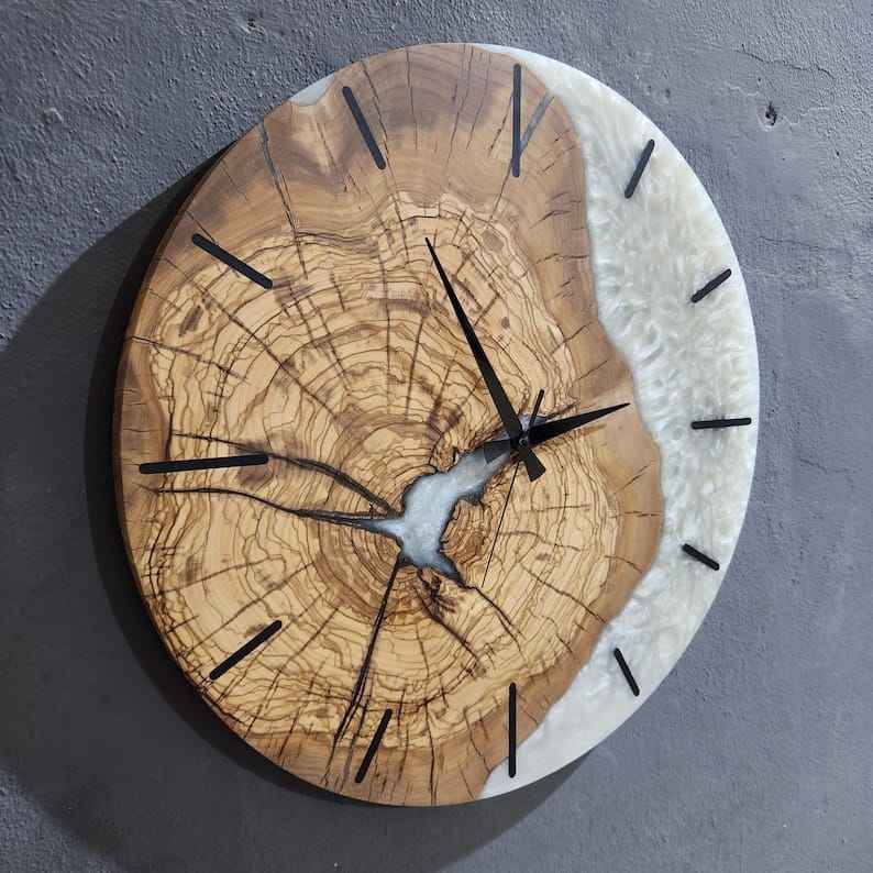 Horloge murale en résine et bois faite à la main, moderne, durable, fonctionnelle, élégante et stylée, parfaite pour le salon, la chambre à coucher