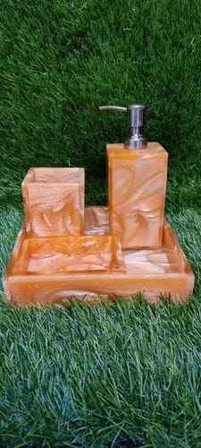 Collection d'accessoires de salle de bain en résine faits à la main : Distributeur de savon rose, porte-brosse à dents, gobelet, porte-savon, plateau de rangement pour appartement et hôtel