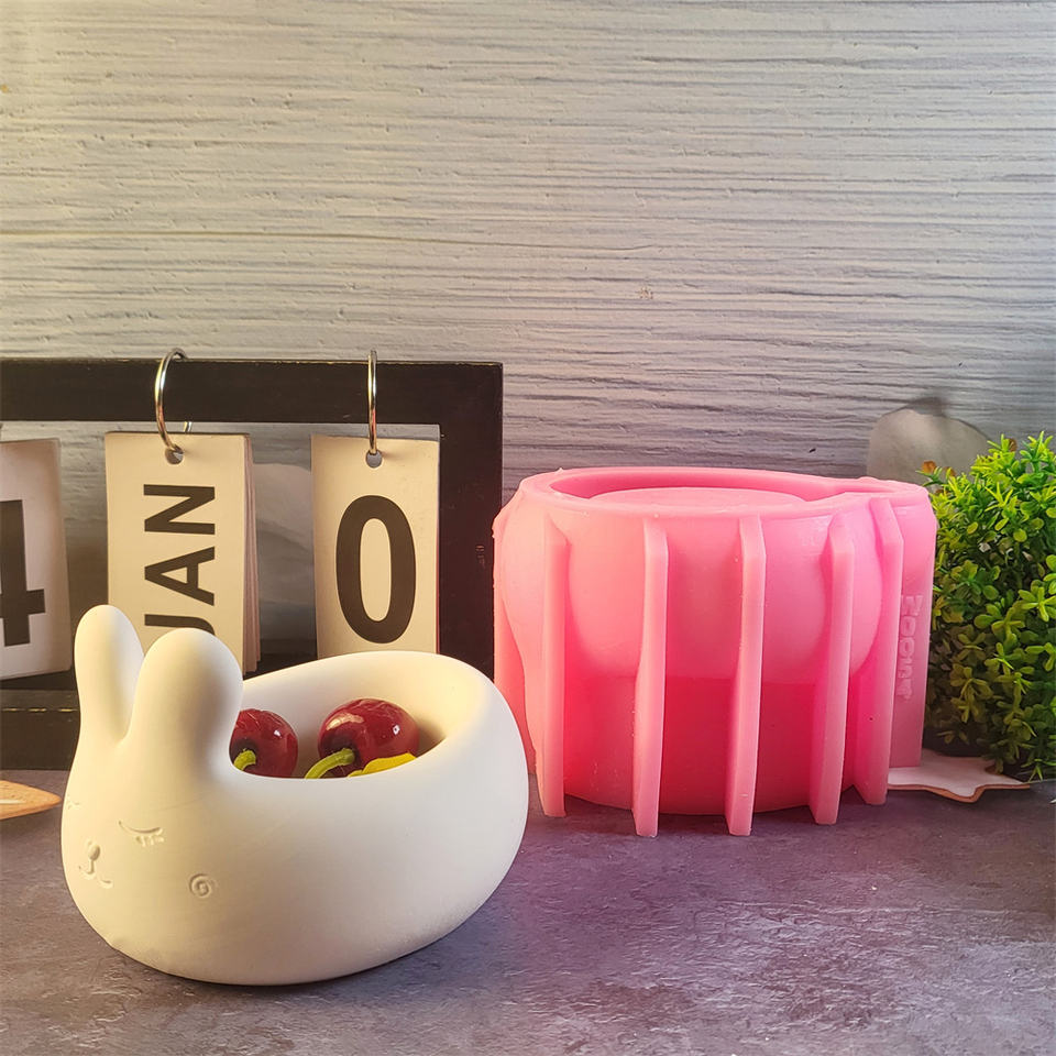 Moules de coulée en résine faits à la main pour bricolage Ins Style ornements décoratifs Silicone petit lapin plateau de rangement moule W0054