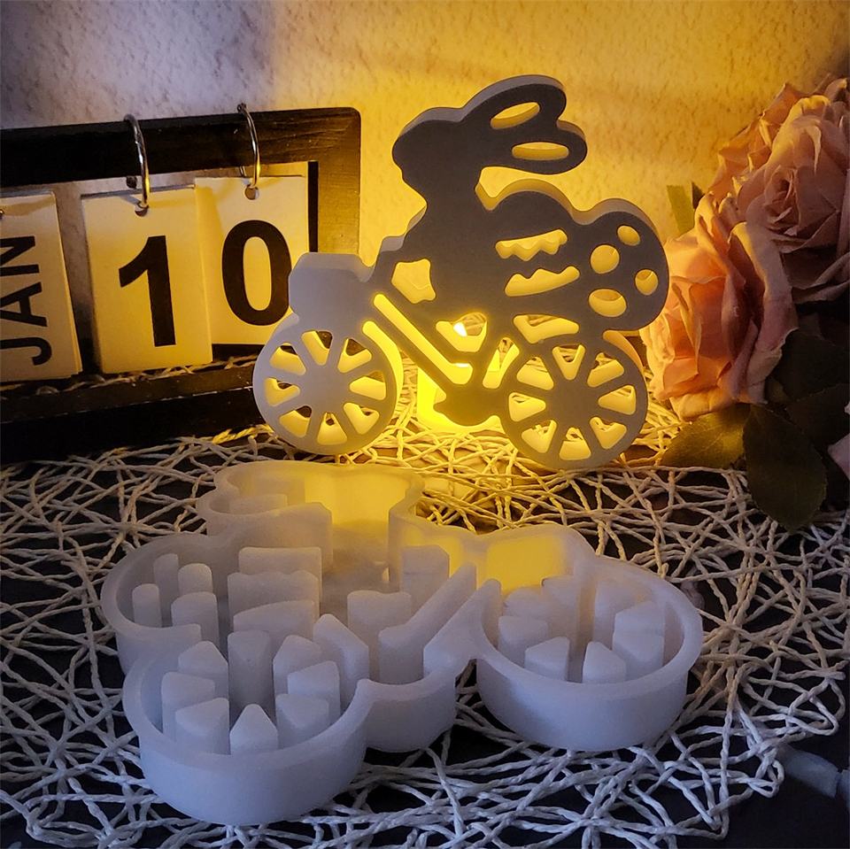 Moules de coulée en résine faits à la main pour bricolage ornements décoratifs Ins Style Silicone pour lapin chevauchant un vélo gâteau outils moule X0450