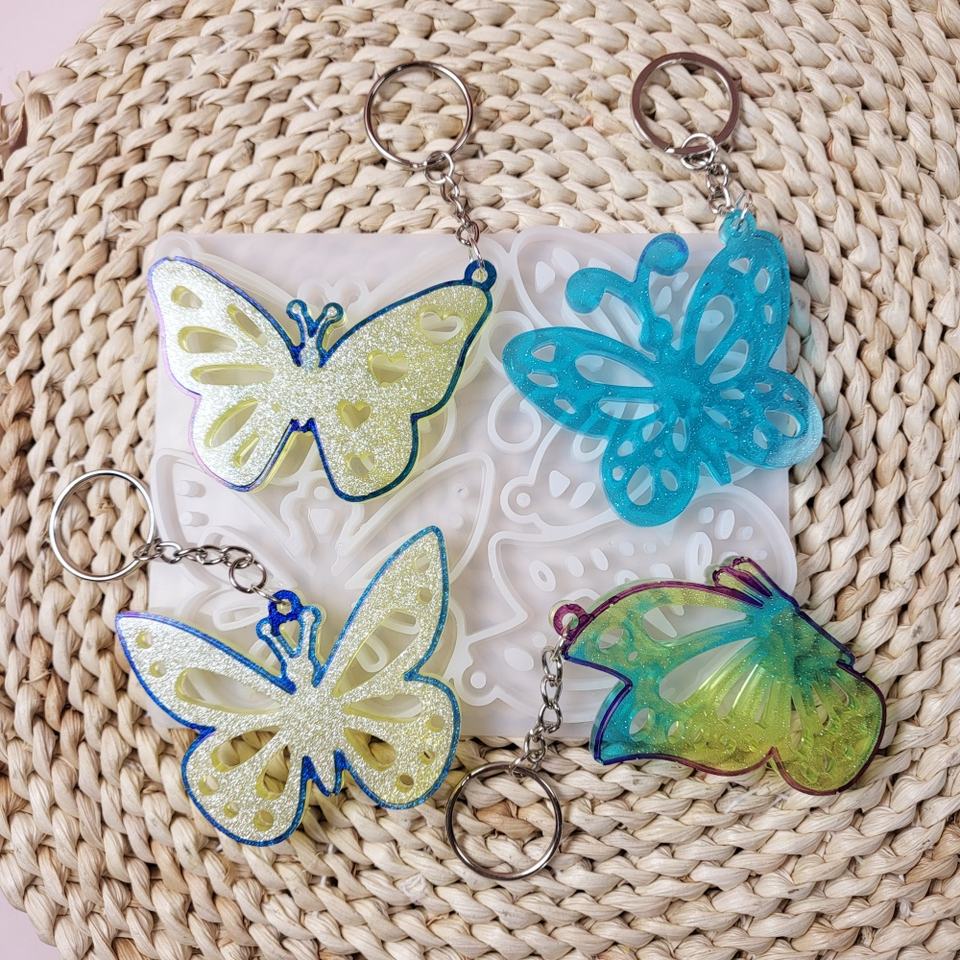 Moules de coulée en résine faits à la main pour bricolage ornements décoratifs Ins Style Silicone papillon porte-clés moule X0501