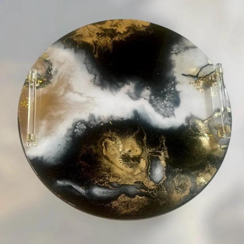 Plateau décoratif en résine fait main, disponible en plusieurs couleurs, de forme ronde, pour la décoration de la maison, plateau en résine de haute qualité, provenant d'Inde.