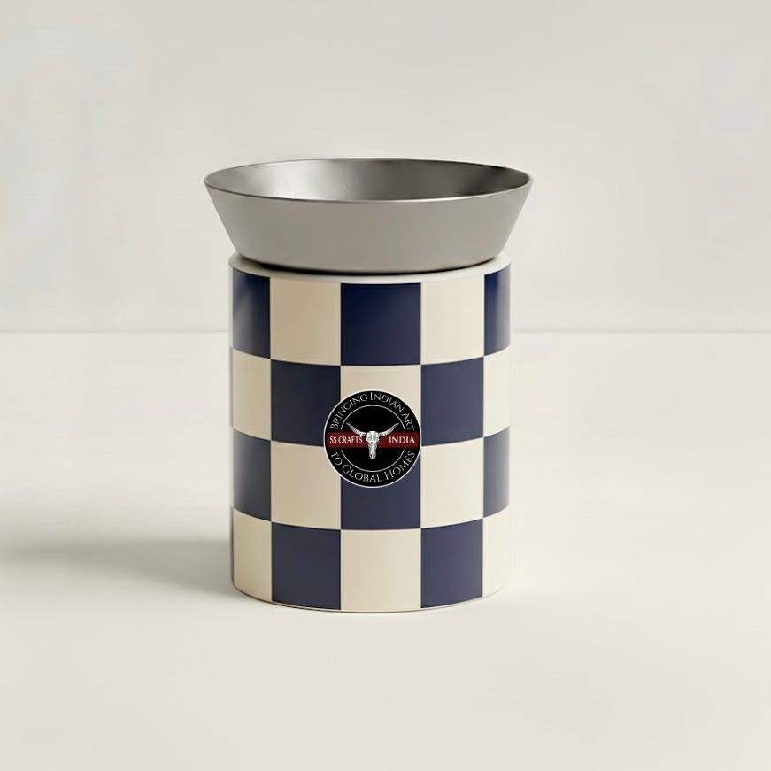 Handmade Wood Resin Incense Burner with Coriander Plug Black White Checkers Design for Aromatherapy Home Decor Unique Gift Ideas