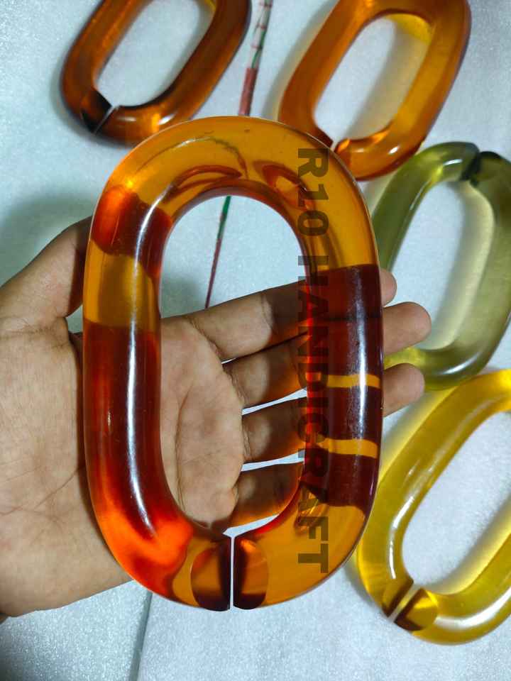 Sculpture artisanale en résine à maillons de chaîne, anneau décoratif ambre olive, ornement de table, art de bureau, accent d'intérieur