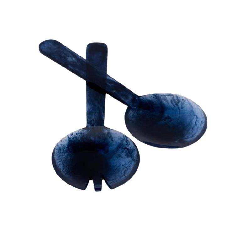 Service à salade en résine fait main, finition bleue, tendance, durable, léger, écologique, passe au lave-vaisselle, vaisselle de cuisine pour la maison