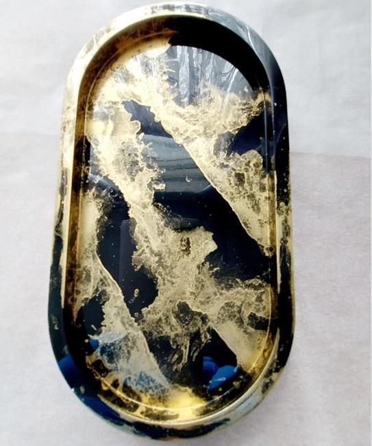 Plateau de service décoratif de luxe moderne en résine Moon Art India avec motif végétal pour la maison et les occasions spéciales