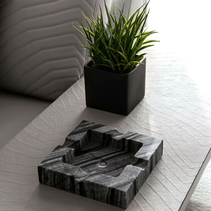 Cendrier de table décoratif de luxe contemporain carré sans fumée en résine fait main