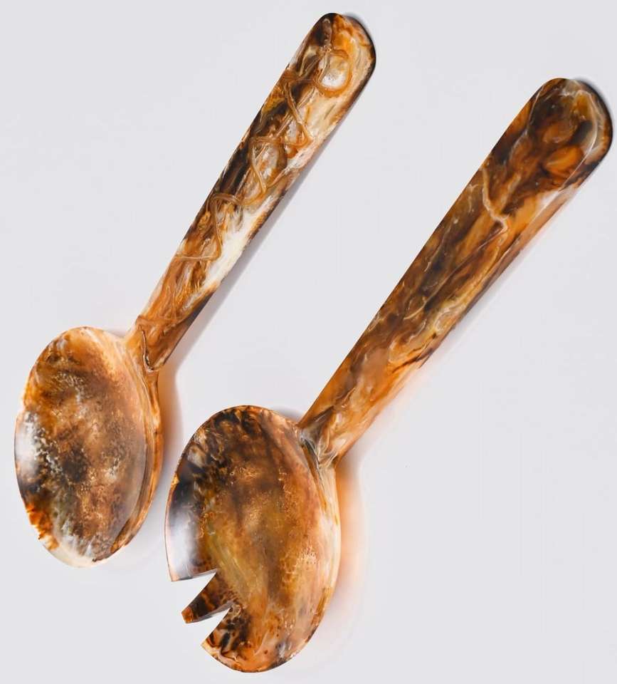 Ensemble cuillère et fourchette en résine faits à la main, durables et légers, parfaits pour la décoration de la table de cuisine et de la salle à manger.