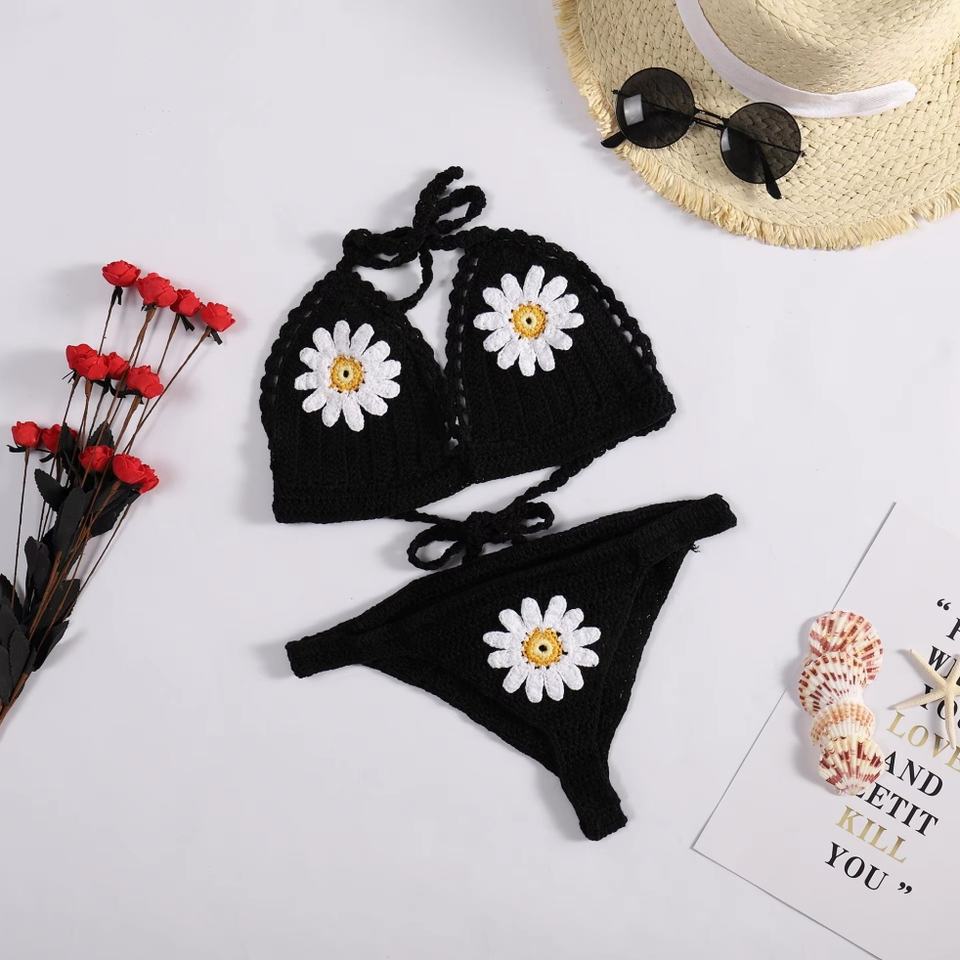 Handmade Retro Floral Crochet Bikini Set for Women Custom 2-Piece Swimwear Beachwear Sexy String Knitting Handmade Beachwear