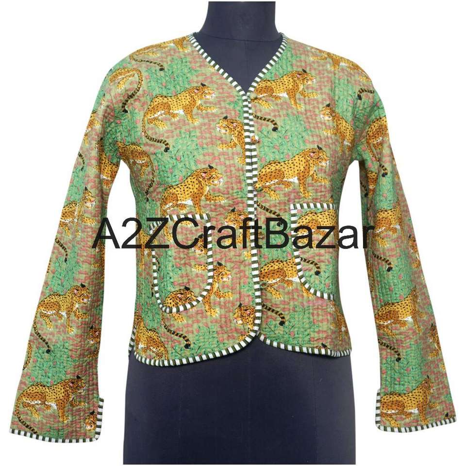 Vestes matelassées réversibles 100% coton biologique faites à la main, respirantes, vintage, écologiques, col en V, courtes, pour femmes, automne, printemps, hiver