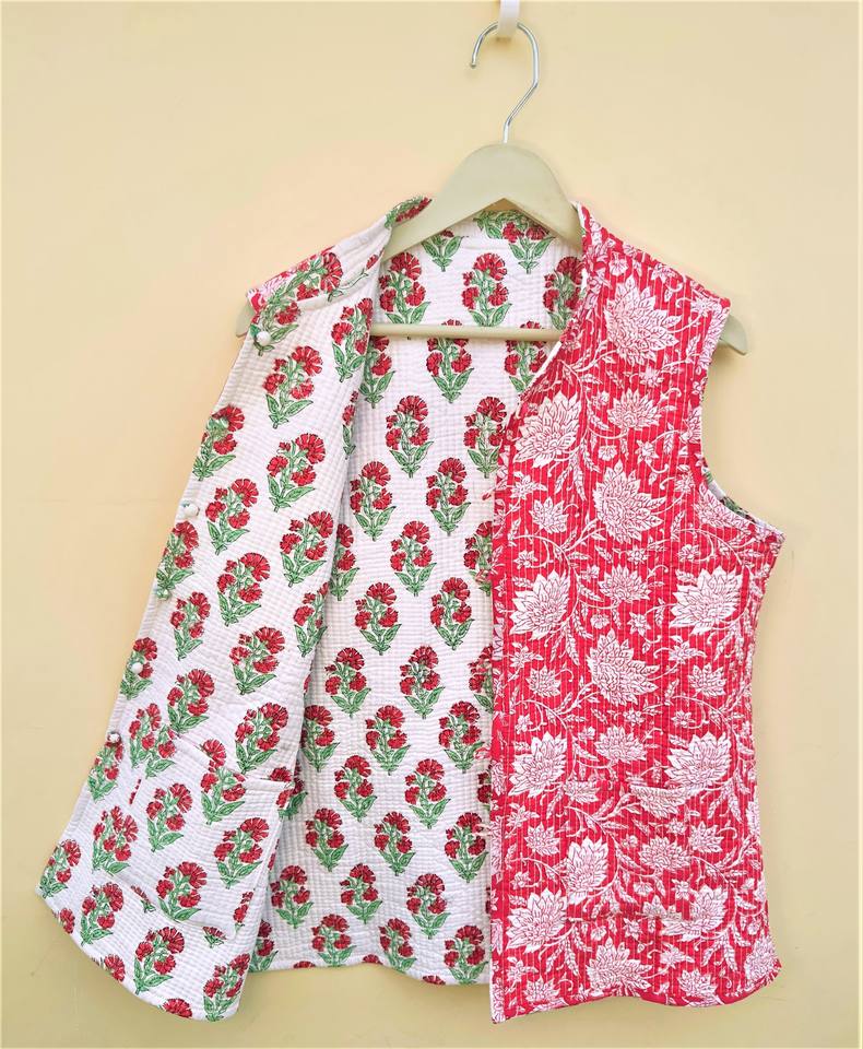 Veste matelassée en coton réversible fait à la main pour femmes bloc imprimé bouton plus proche Vintage hiver sans manches manteau meilleur cadeau pour elle