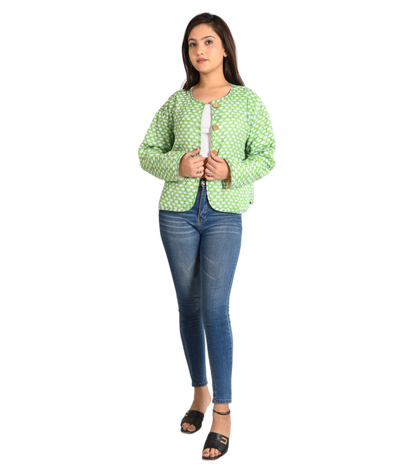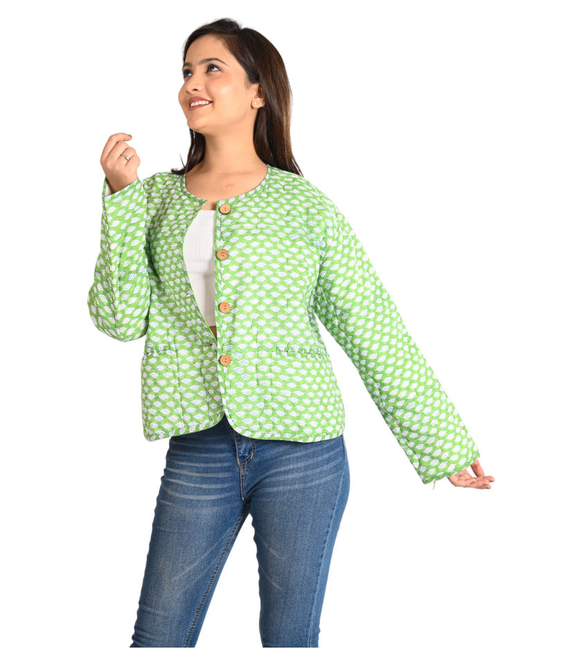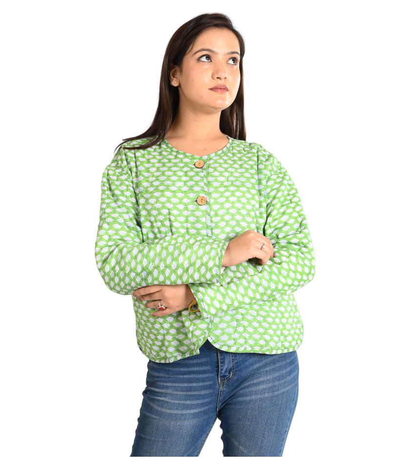 Veste d'hiver courte pour femme, faite à la main, réversible, en coton tissé, matelassée, écologique, imprimée au bloc Sanganeri, style indien, respirante