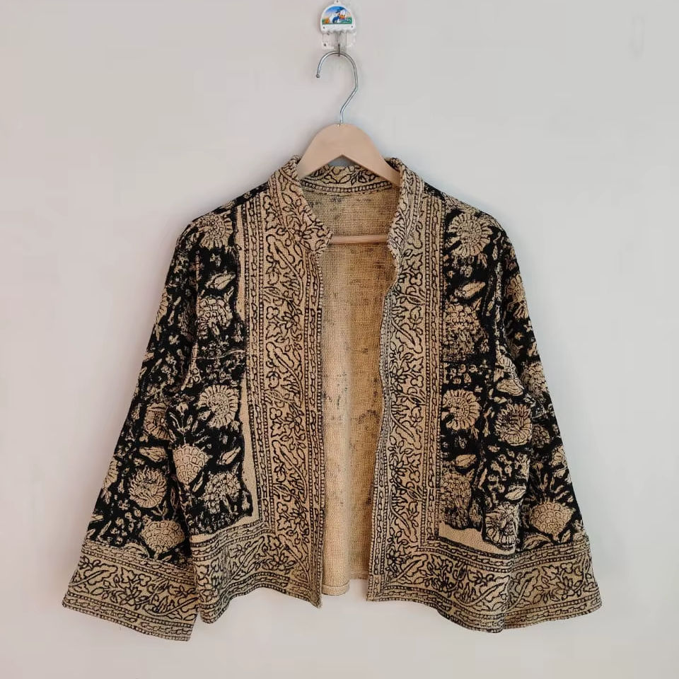 Blouson bomber réversible fait main, écologique, respirant, imprimé HD, à manches courtes, en coton et doublure TNT, coupe courte