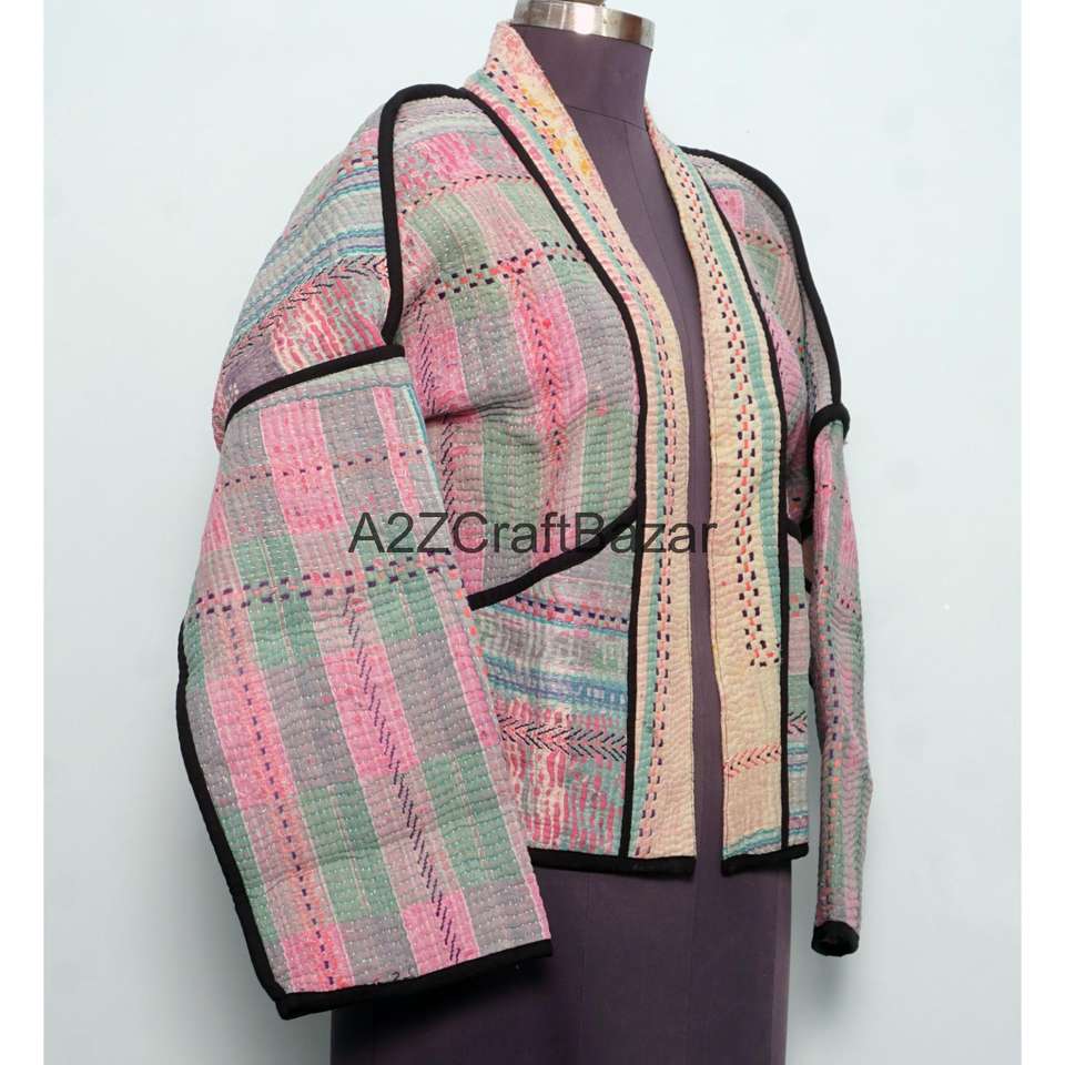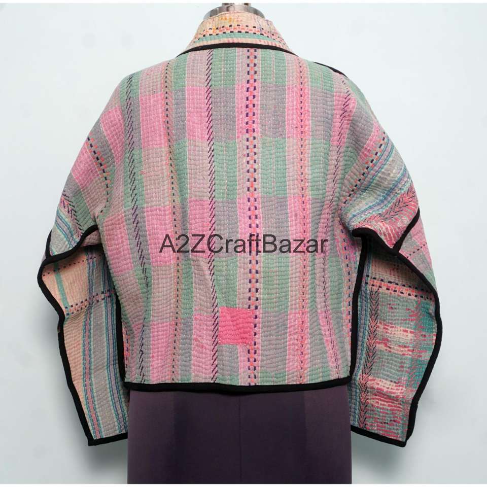 Veste à col roulé boutonnée vintage Kantha faite à la main, réversible, écologique, respirante, à séchage rapide, en coton pur pour femmes, printemps-hiver