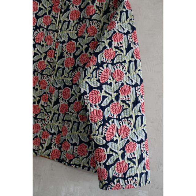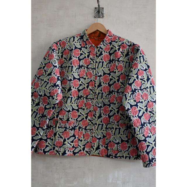 Veste en coton matelassée réversible écologique faite à la main avec imprimé floral en blocs, manches longues, 100% coton, veste d'hiver pour femmes