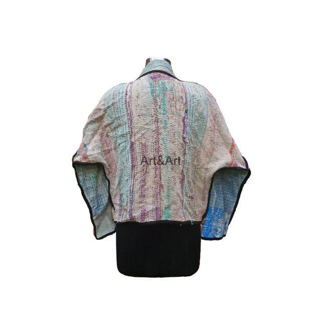 Veste Kantha indienne réversible faite à la main pour femmes, style bohème, broderie décorative, poches, vintage, 100% coton, écologique