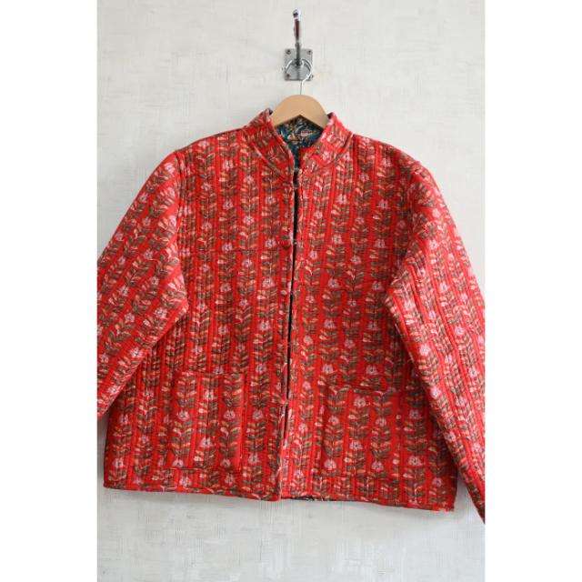 Veste en coton matelassée réversible faite à la main, imprimé floral en blocs, manches longues, bouton d'hiver, veste pour femmes, pour la vente en gros et l'exportation