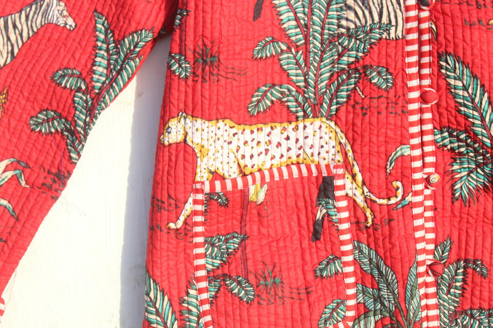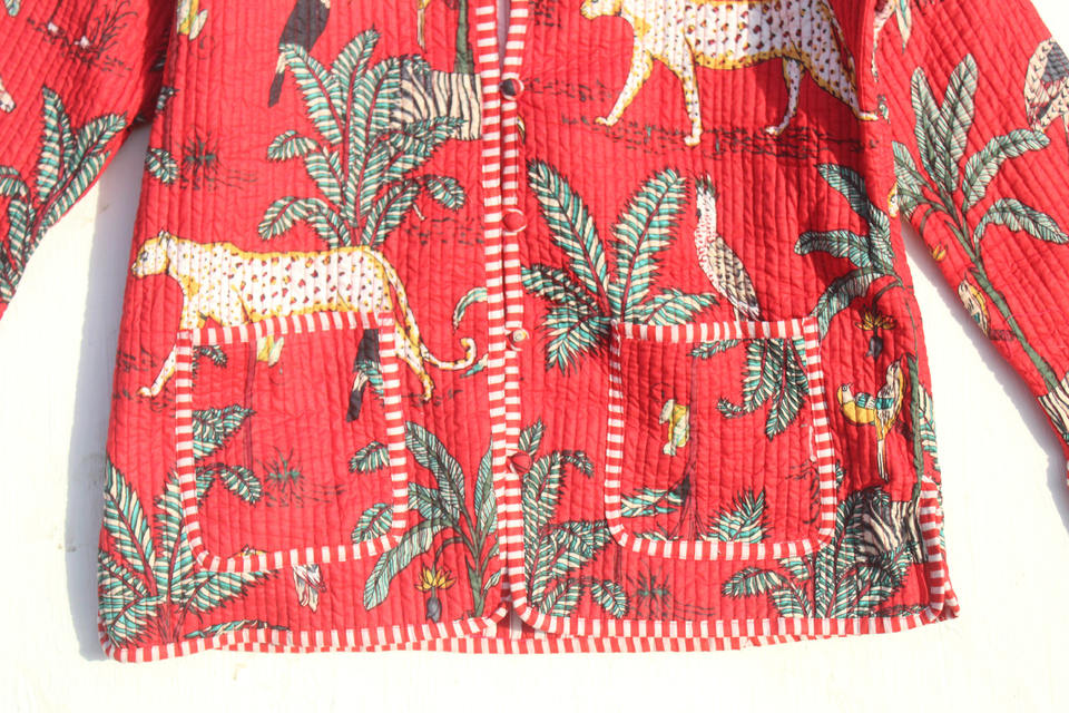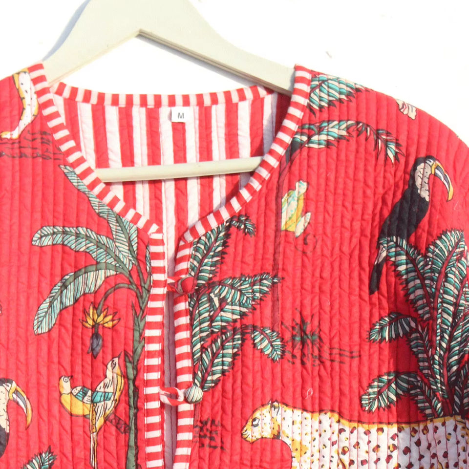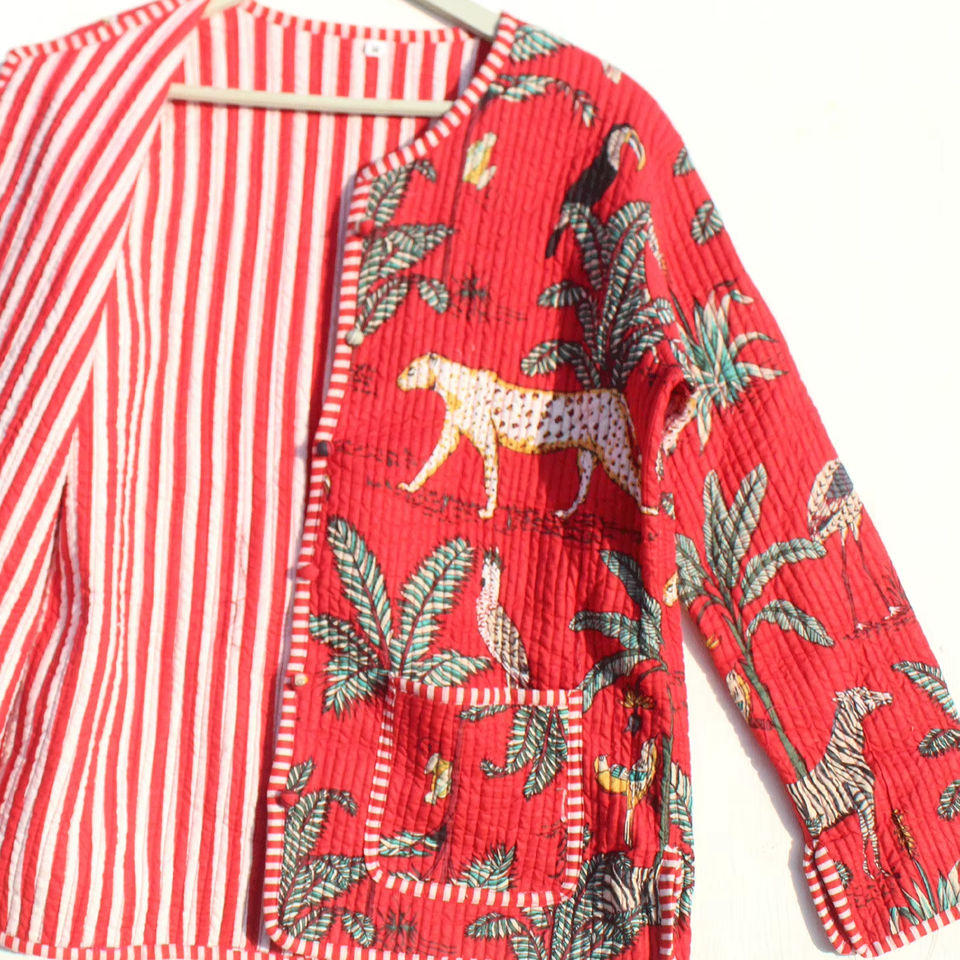 Veste matelassée réversible en coton faite à la main pour femme, manteau court 100 % coton avec imprimé bloc, veste matelassée pour femme