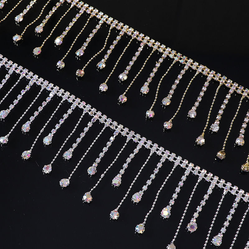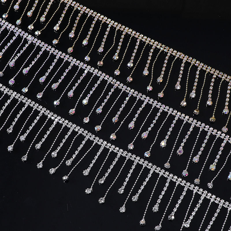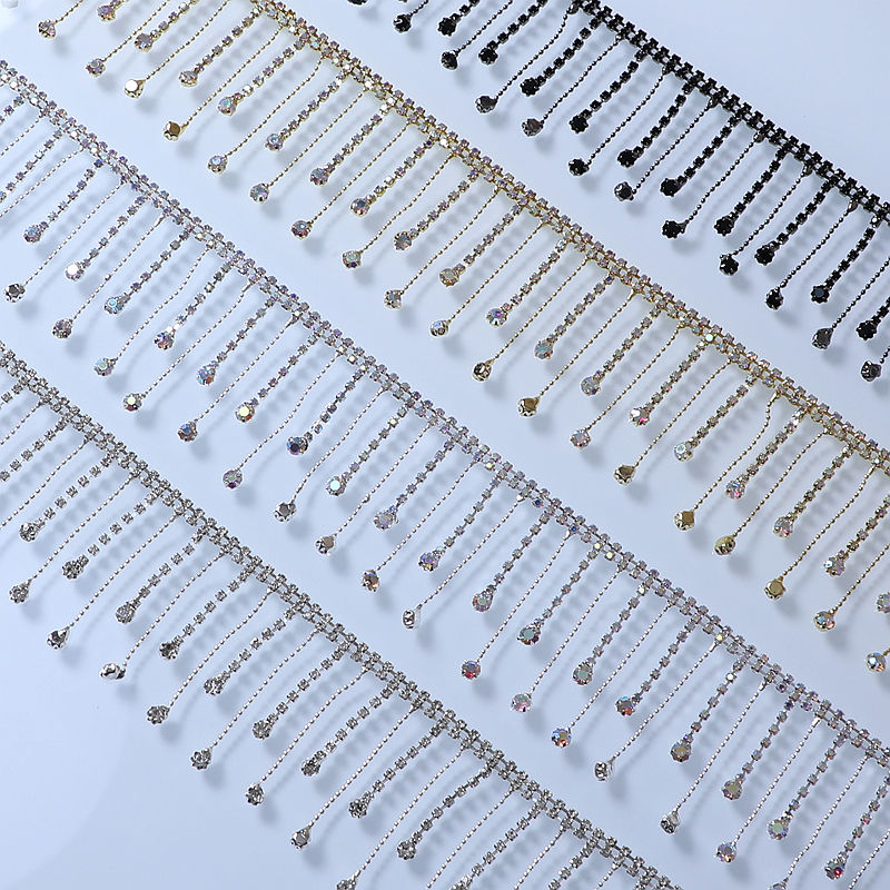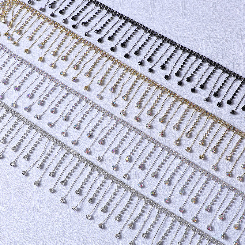 Rouleau de robe à franges en strass fait à la main Applique Gland Chaîne Colliers en cristal Décoration de pierre de verre Vêtements Sacs Motif