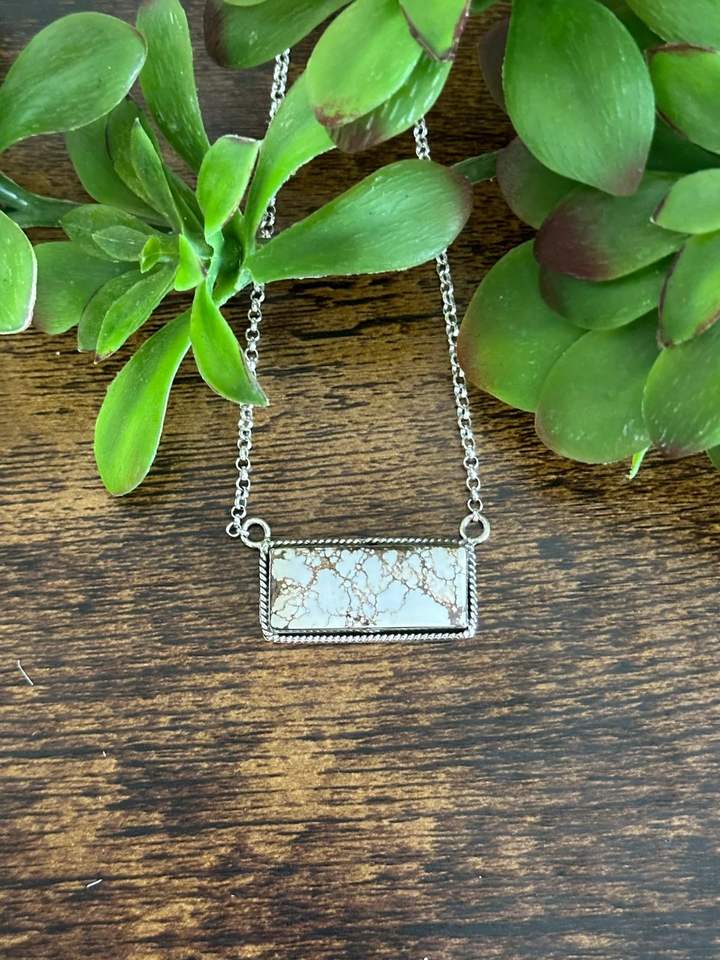 Collier artisanal en argent sterling plaqué rhodium/or avec pierre Southwest Wild Horse sertie en clos