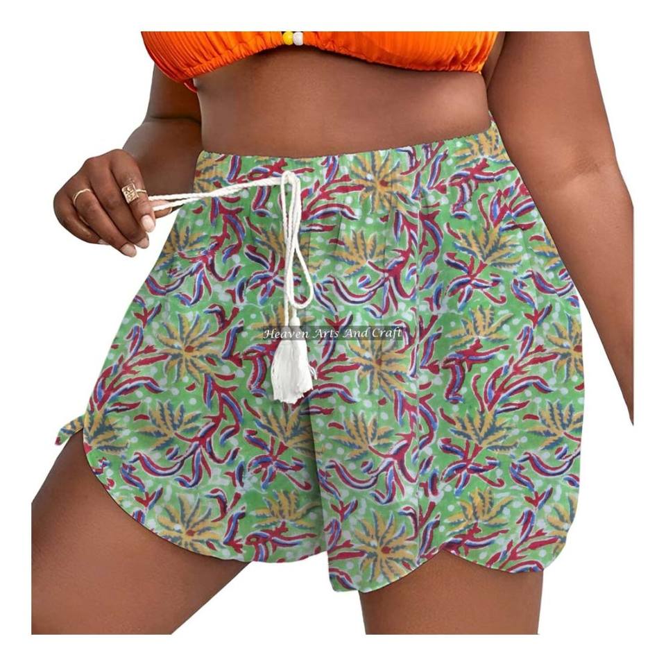Nom du produit:Shorts à cordon de serrage en corde, imprimés à la main au bloc, 100 % coton