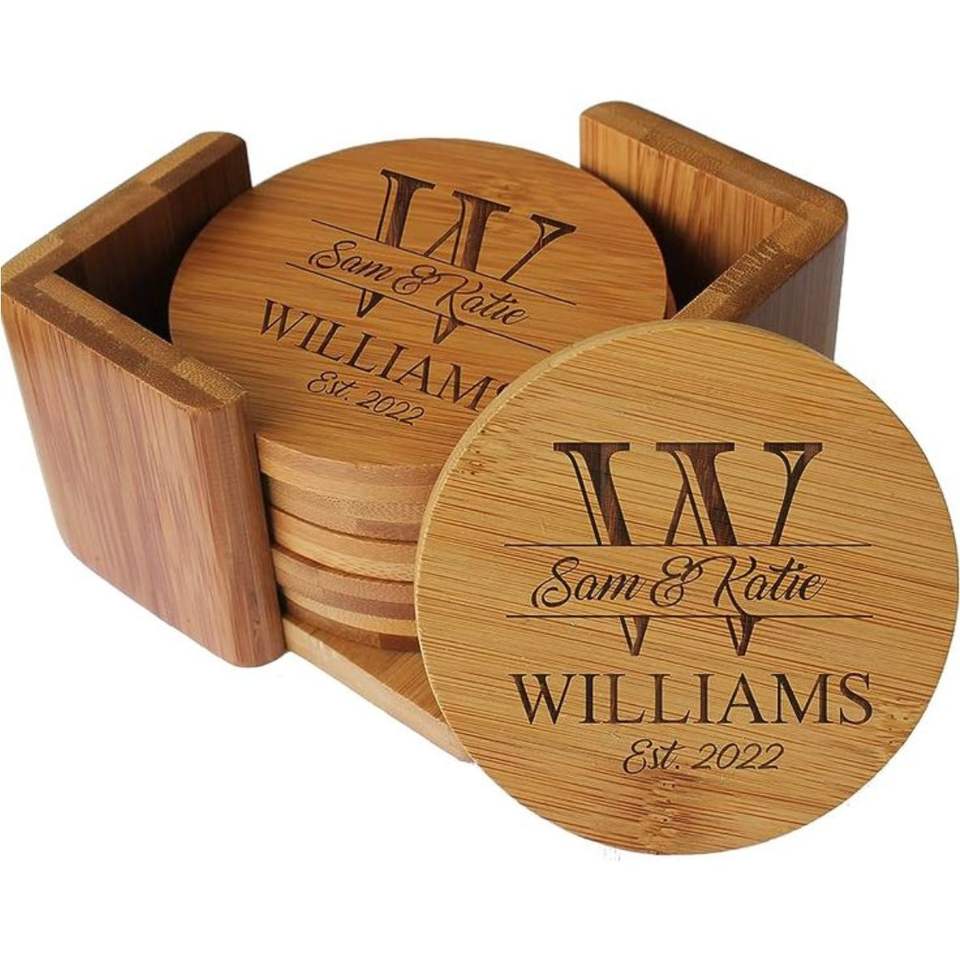 Ensemble de sous-verres ronds en bois faits à la main, logo personnalisé gravé, sous-verres écologiques en bois naturel pour tasse à café, décoration de la maison, table