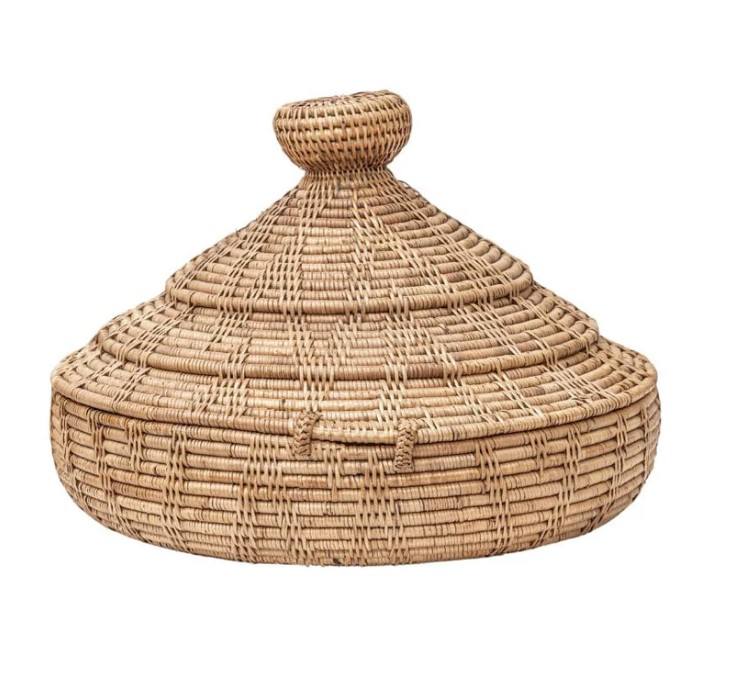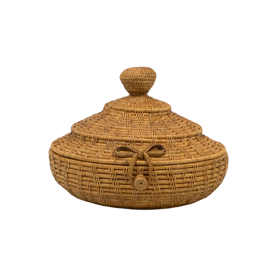 Panier en rotin avec couvercle orné d'un nœud décoratif