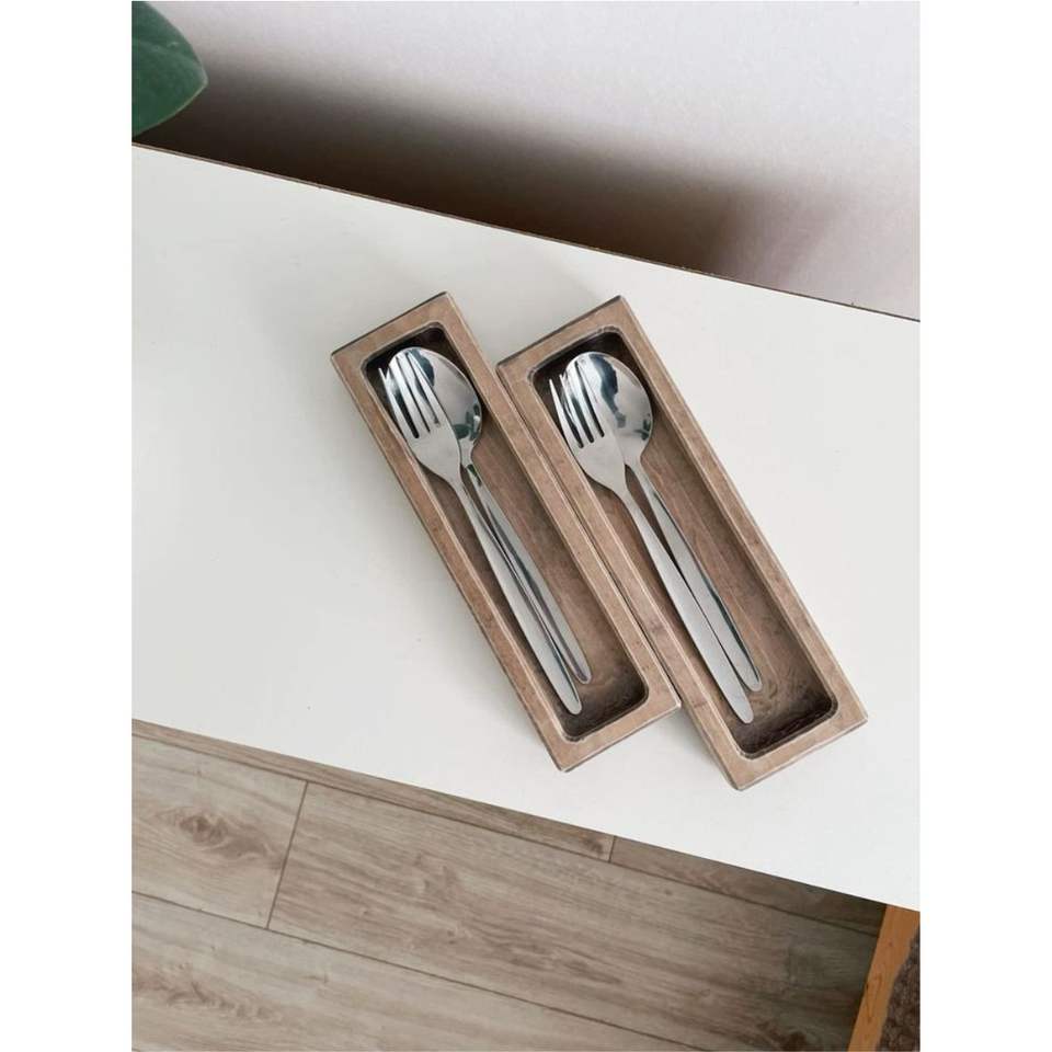 Handmade Rustic Cutlery Holder Tray Minimalist Silverware Organizer for Restaurant & Hotel Sustainable Spoon & Fork Storage Box