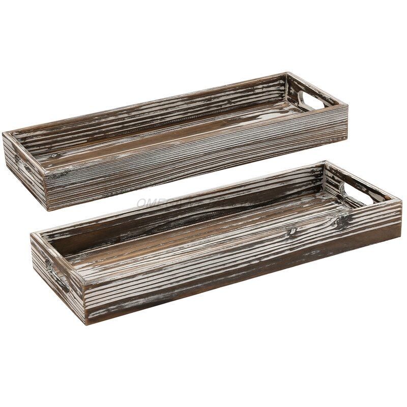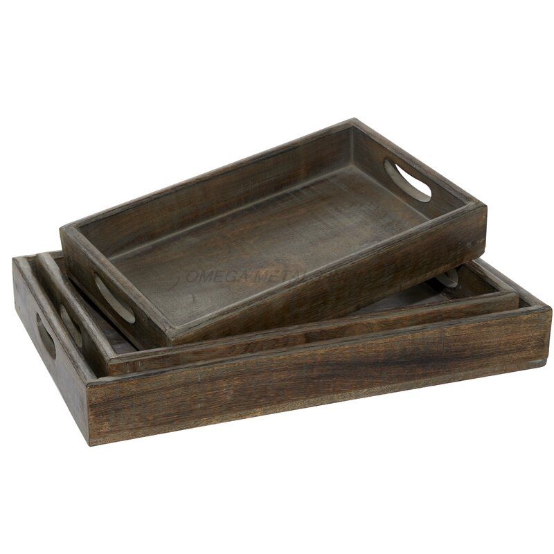 Plateau de service en bois gris rustique fait à la main avec poignées faciles à saisir longue forme rectangulaire pour un service élégant