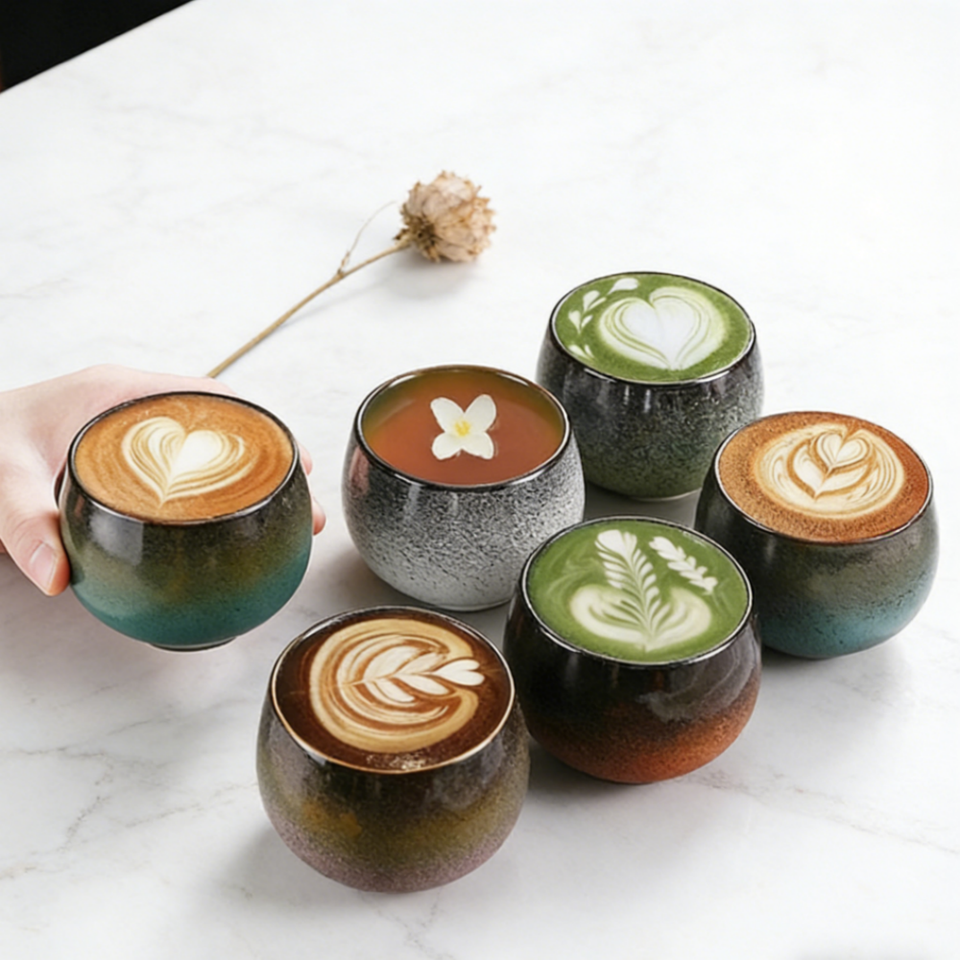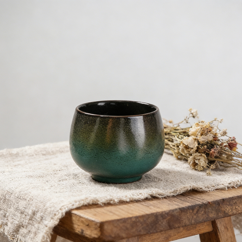 Tasse à café en céramique rustique émaillée verte faite à la main - Tasse à thé artisanale pour latte, matcha, expresso - Vaisselle unique pour la maison et le café