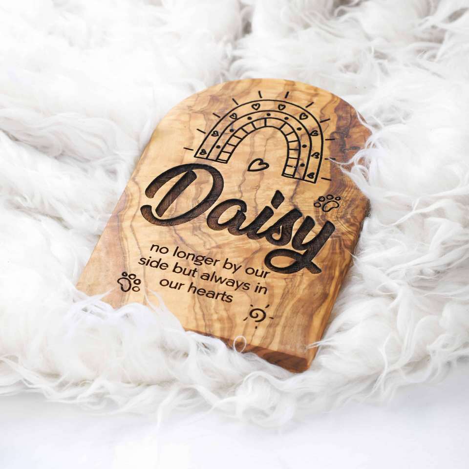 Signe de souvenir pour animaux de compagnie en bois d'olivier rustique fait à la main Plaque de cimetière personnalisée