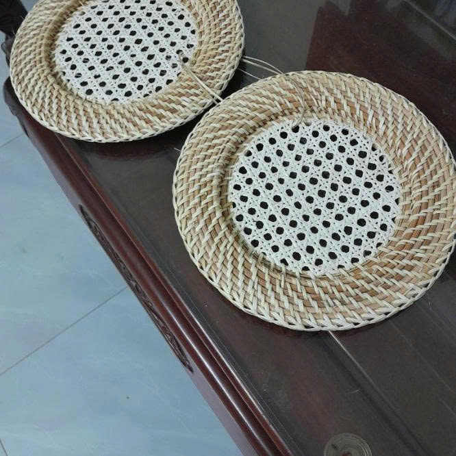 Assiette de présentation rustique en rotin tressé à la main 33 pouces, naturelle, fabricant vietnamien, vente en gros, export