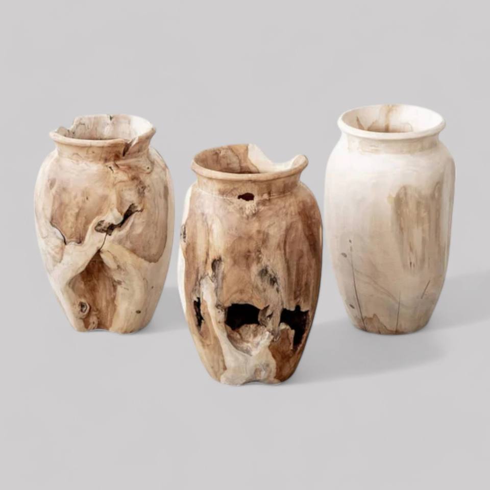 Pot de jardin en bois de racine de teck rustique fait à la main Vase artisanal unique en son genre pour la décoration extérieure de la maison ou de l'hôtel pour le sol