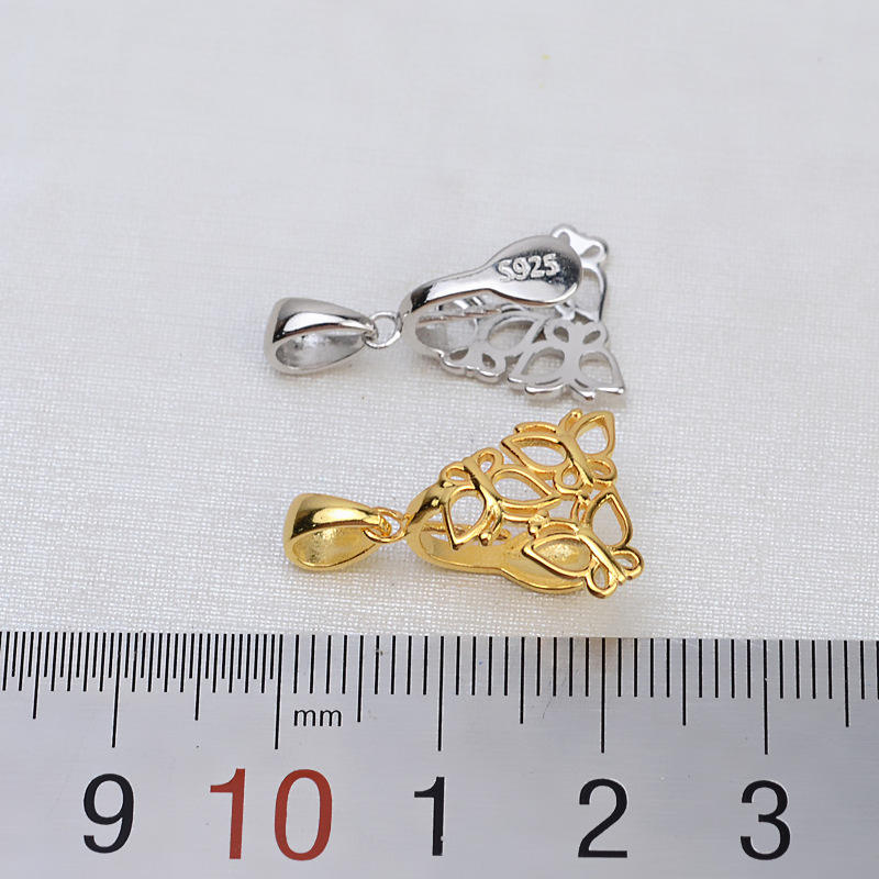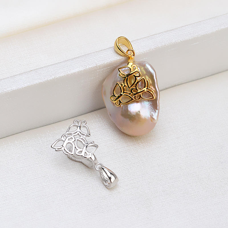 Pendentif en argent S925 fait main, baroque, 3 papillons, perle, base creuse, collier, accessoire, composants de bijoux DIY, 1395