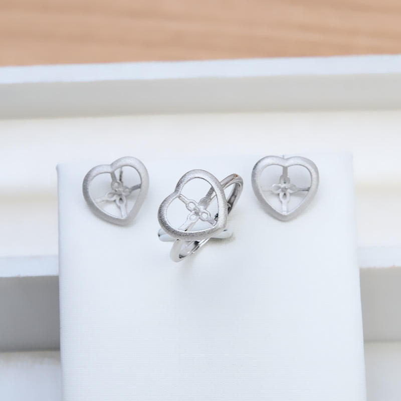 Ensemble de bijoux de mode pour femmes en argent S925 fait main, accessoire de bricolage, boucles d'oreilles en forme de cœur givrées, bague, pendentif, 1362 bijoux en perles